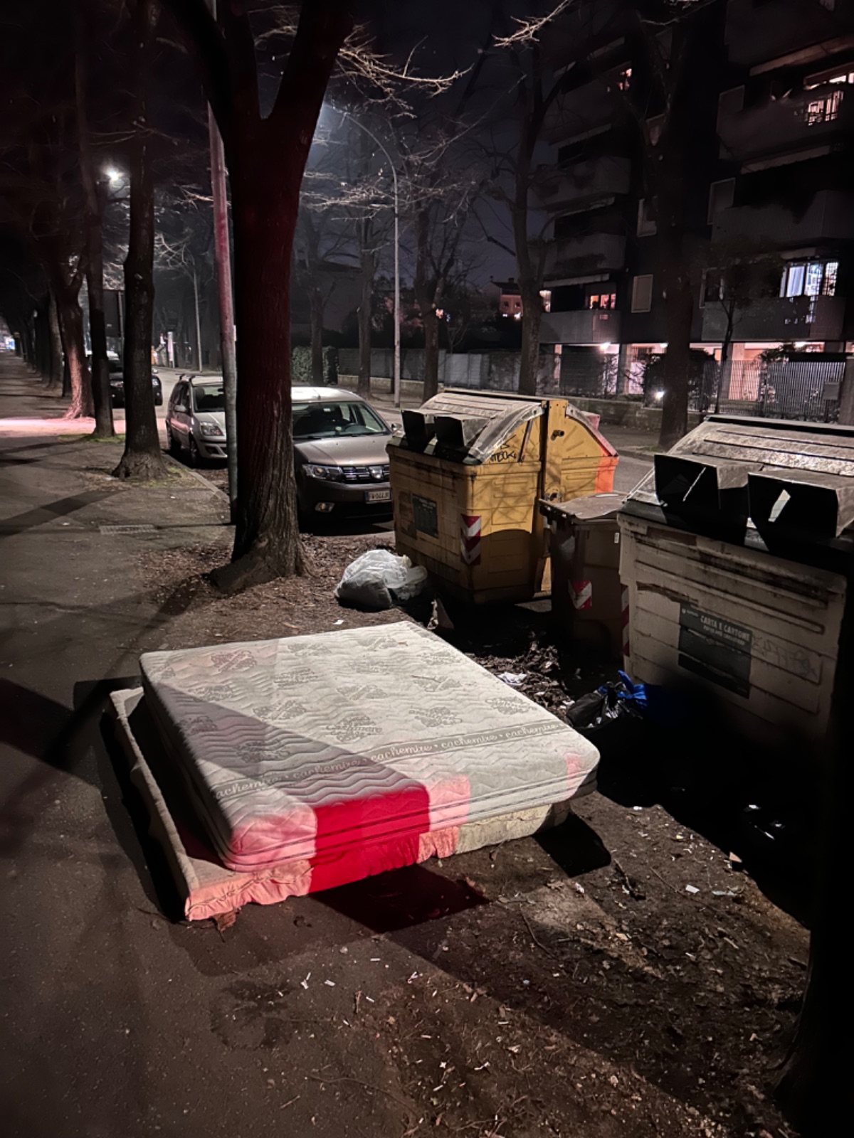 È da 4 giorni che c’è questa situazione, oltre il fatto che spesso ci troviamo in questa situazione in questi cassonetti se non peggio.
